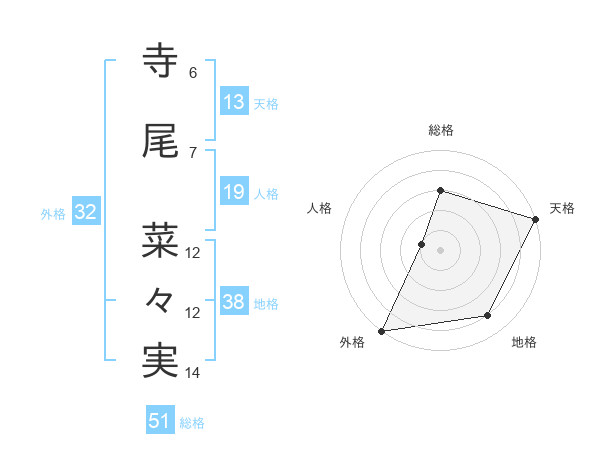 寺尾 菜々実さんの総格は51画の3点!