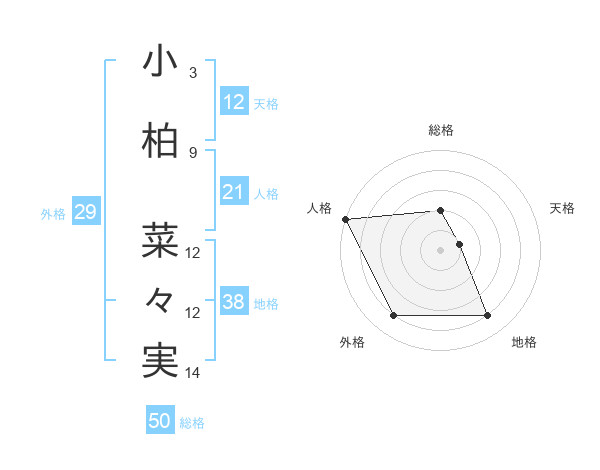小柏 菜々実さんの総格は50画の2点!