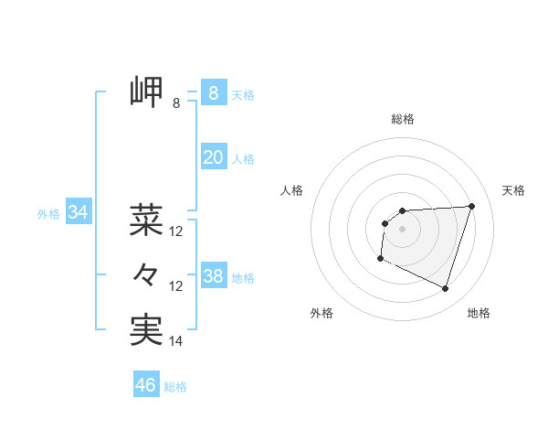 岬 菜々実さんの総格は46画の1点!