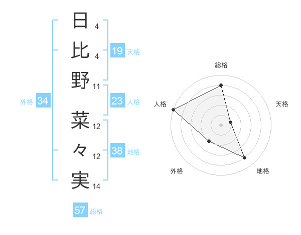 日比野 菜々実さんを姓名の画数から五運を鑑定