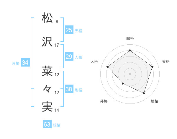 松沢 菜々実さんの総格は63画の4点!