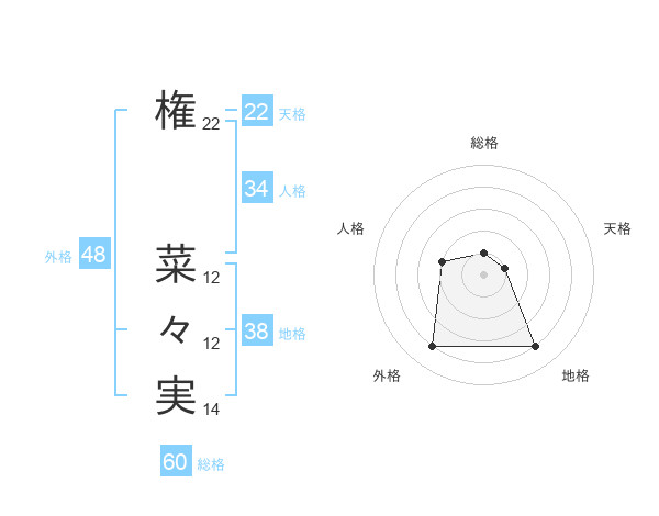 権 菜々実さんの総格は60画の1点!