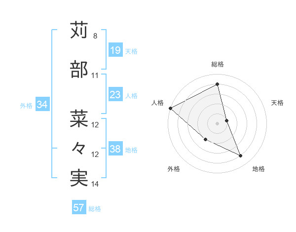 苅部 菜々実さんの総格は57画の4点!