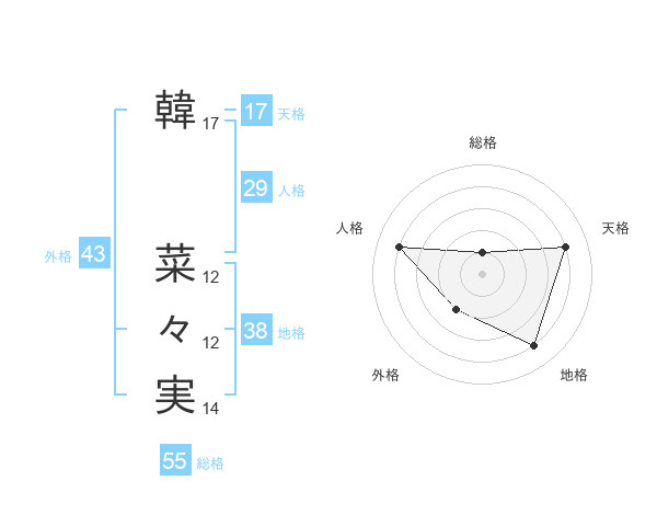 韓 菜々実さんの天格は17画の4点!