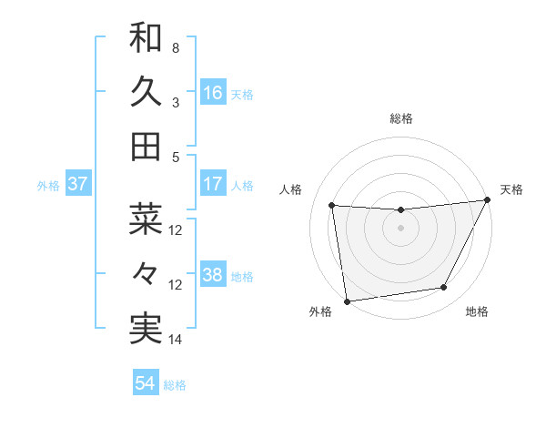 和久田 菜々実さんを姓名の画数から五運を鑑定