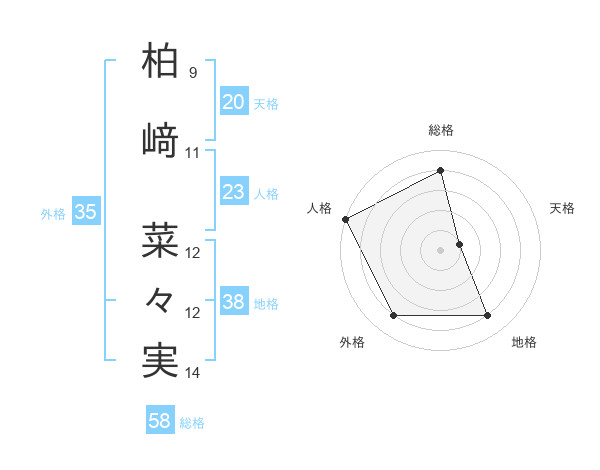 柏﨑 菜々実さんの地格は38画の4点!