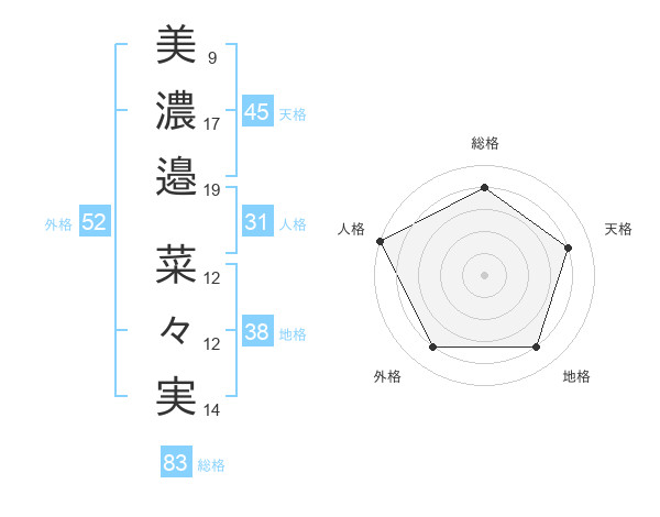 美濃邉 菜々実さんの総格は83画の4点!