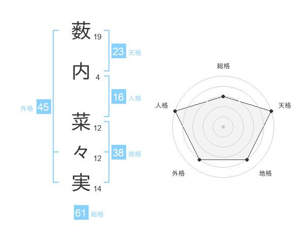 薮内 菜々実さんを姓名の画数から五運を鑑定