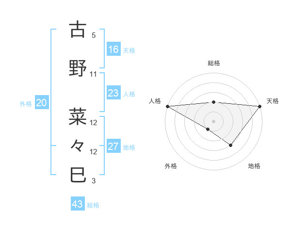古野 菜々巳さんを姓名の画数から五運を鑑定