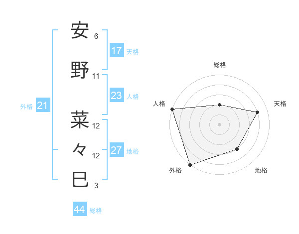 安野 菜々巳さんを姓名の画数から五運を鑑定