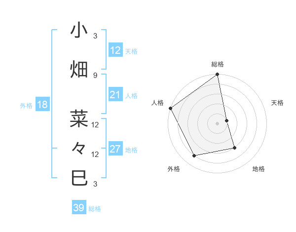 小畑 菜々巳さんを姓名の画数から五運を鑑定