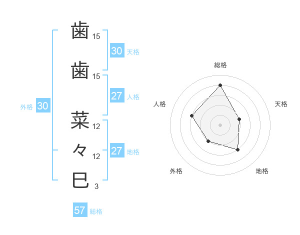 歯歯 菜々巳さんを姓名の画数から五運を鑑定