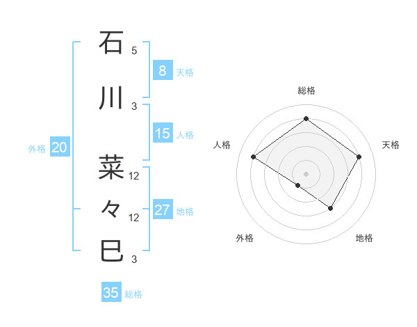 石川 菜々巳さんを姓名の画数から五運を鑑定