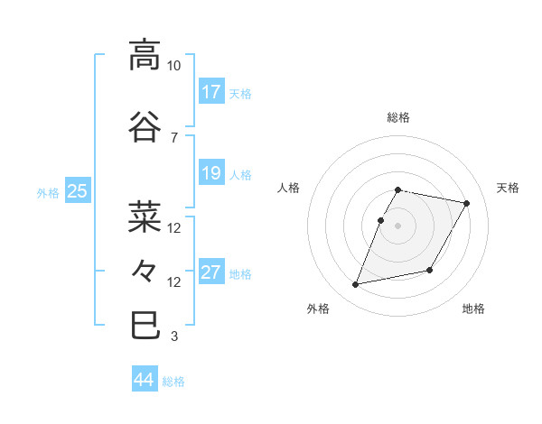 高谷 菜々巳さんを姓名の画数から五運を鑑定