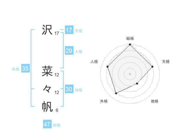 沢 菜々帆さんを姓名の画数から五運を鑑定