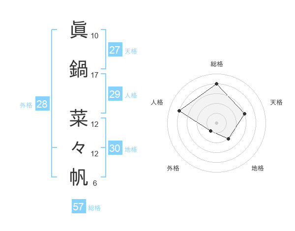 眞鍋 菜々帆さんを姓名の画数から五運を鑑定