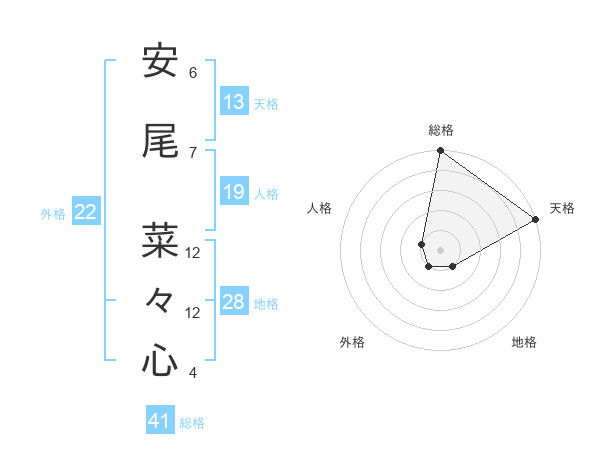 安尾 菜々心さんを姓名の画数から五運を鑑定