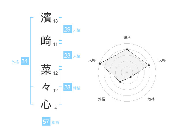 濱﨑 菜々心さんの総格は57画の4点!