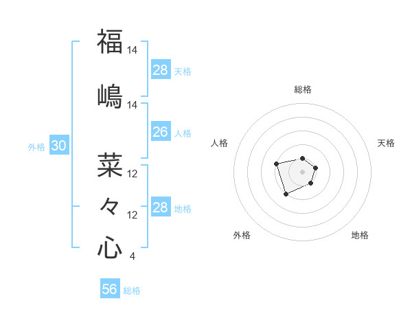 福嶋 菜々心さんを姓名の画数から五運を鑑定