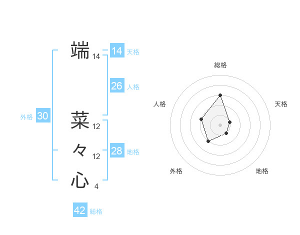 端 菜々心さんを姓名の画数から五運を鑑定