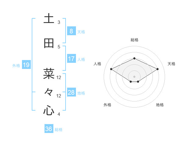 土田 菜々心さんを姓名の画数から五運を鑑定