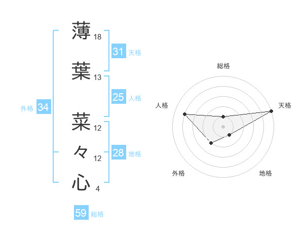 薄葉 菜々心さんを姓名の画数から五運を鑑定