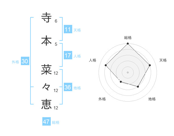 寺本 菜々恵さんを姓名の画数から五運を鑑定
