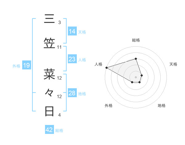 三笠 菜々日さんを姓名の画数から五運を鑑定