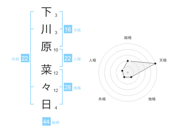下川原 菜々日さんの総格は44画の2点!
