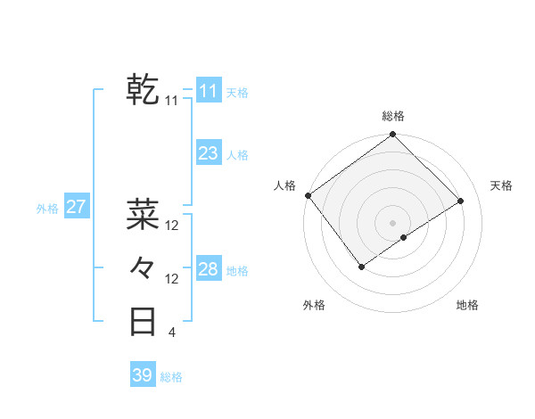 乾 菜々日さんの総格は39画の5点!