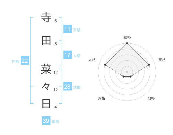 寺田 菜々日さんの天格は11画の4点!