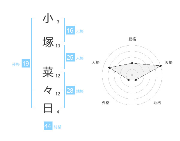 小塚 菜々日さんの総格は44画の2点!
