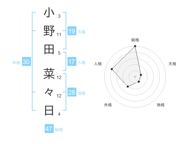 小野田 菜々日さんを姓名の画数から五運を鑑定