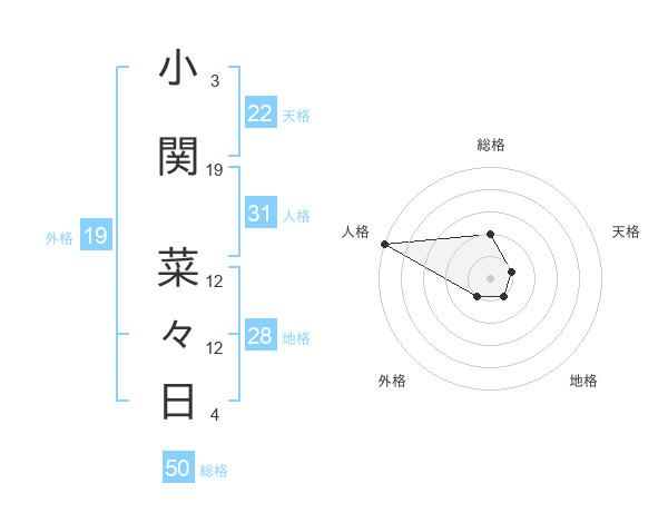 小関 菜々日さんを姓名の画数から五運を鑑定