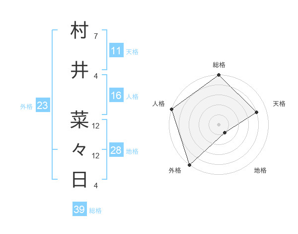 村井 菜々日さんの外格は23画の5点!