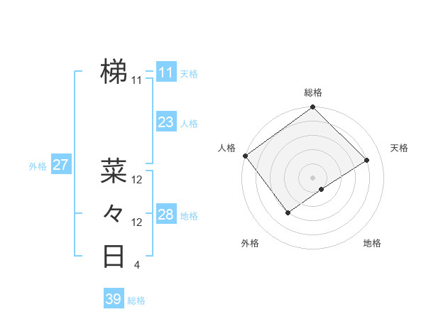 梯 菜々日さんを姓名の画数から五運を鑑定