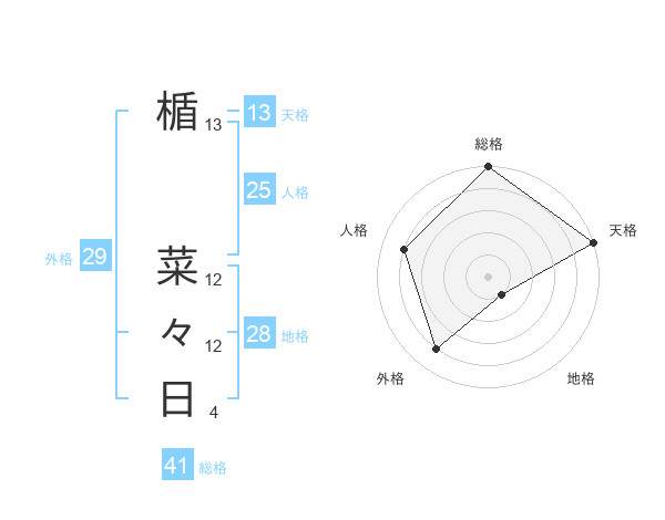 楯 菜々日さんを姓名の画数から五運を鑑定