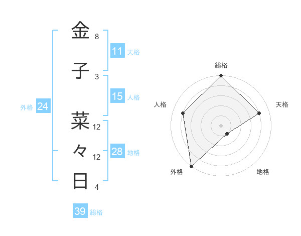 金子 菜々日さんを姓名の画数から五運を鑑定