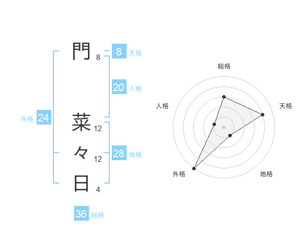 門 菜々日さんの外格は24画の5点!