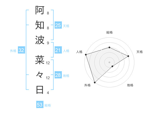 阿知波 菜々日さんを姓名の画数から五運を鑑定
