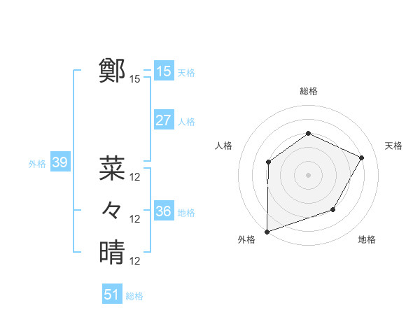 鄭 菜々晴さんの総格は51画の3点!
