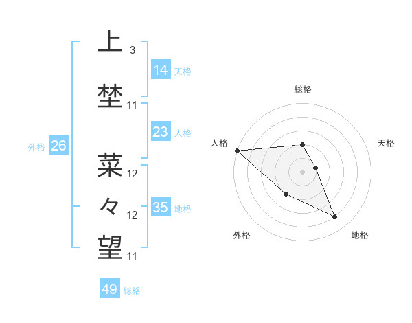 上埜 菜々望さんを姓名の画数から五運を鑑定