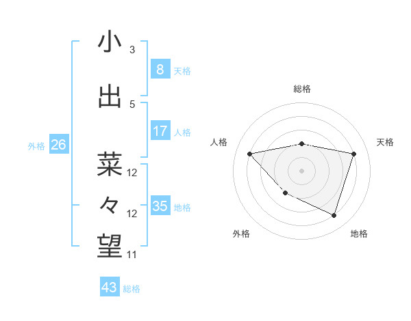 小出 菜々望さんを姓名の画数から五運を鑑定