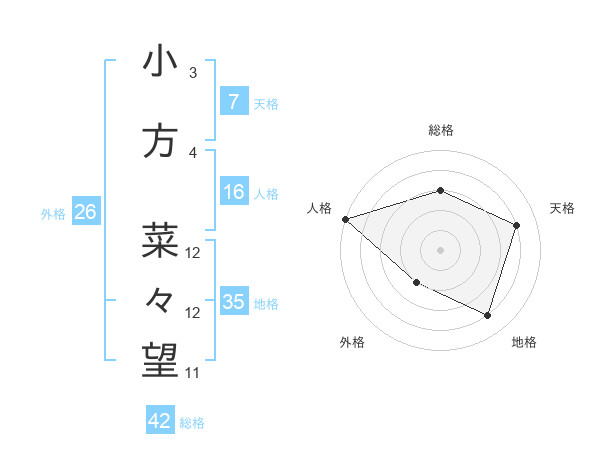 小方 菜々望さんの地格は35画の4点!