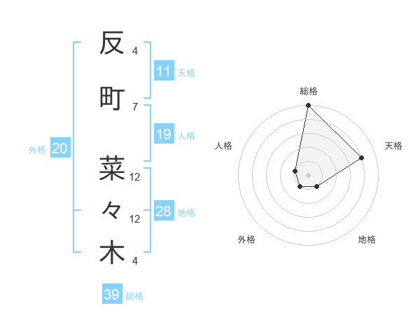 反町 菜々木さんを姓名の画数から五運を鑑定