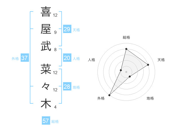 喜屋武 菜々木さんを姓名の画数から五運を鑑定