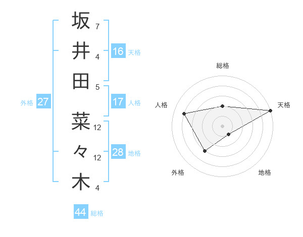 坂井田 菜々木さんを姓名の画数から五運を鑑定