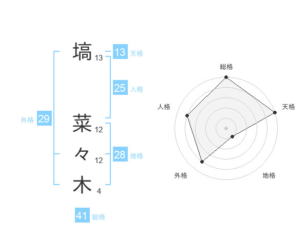 塙 菜々木さんを姓名の画数から五運を鑑定