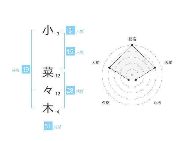 小 菜々木さんの総格は31画の5点!