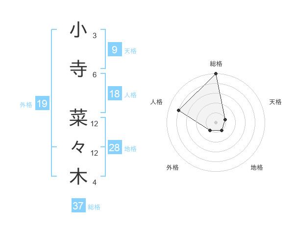 小寺 菜々木さんの総格は37画の5点!